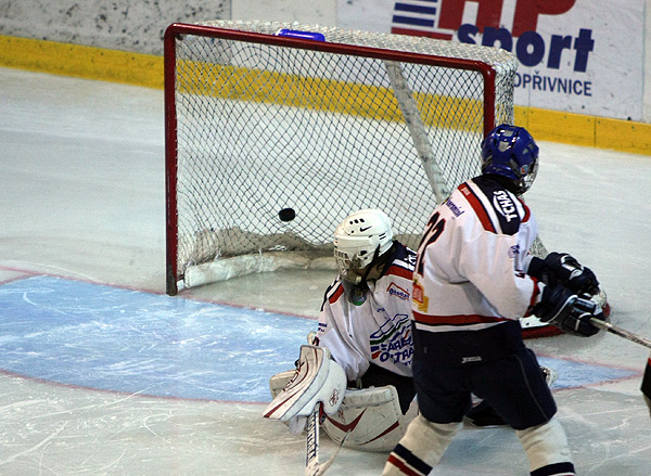 Úvodní branka Znojemských Orlů,na kterou Jan Sanitrák nestačil | autor: Vladimír Vronka