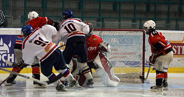 Jiří Ganger při snaze dotlačit touš do branky | autor: Vladimír Vronka